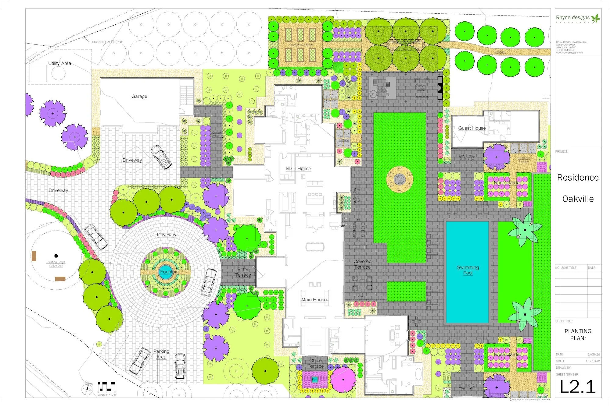 Secondly, in the heart of the Napa Valley near Oakville, Rhyne Designs is developing the landscape design for a four-acre residential property that has remnants of an Olive tree orchard. The project includes a five bedroom house, detached garage, guest house, swimming pool, outdoor kitchen / living room pavilion, outdoor dining among the Olive trees, and a pickleball court. Plantings are used to define a variety of outdoor living spaces with some unique plant combinations to keep things interesting year-round while keeping the irrigation water use low.